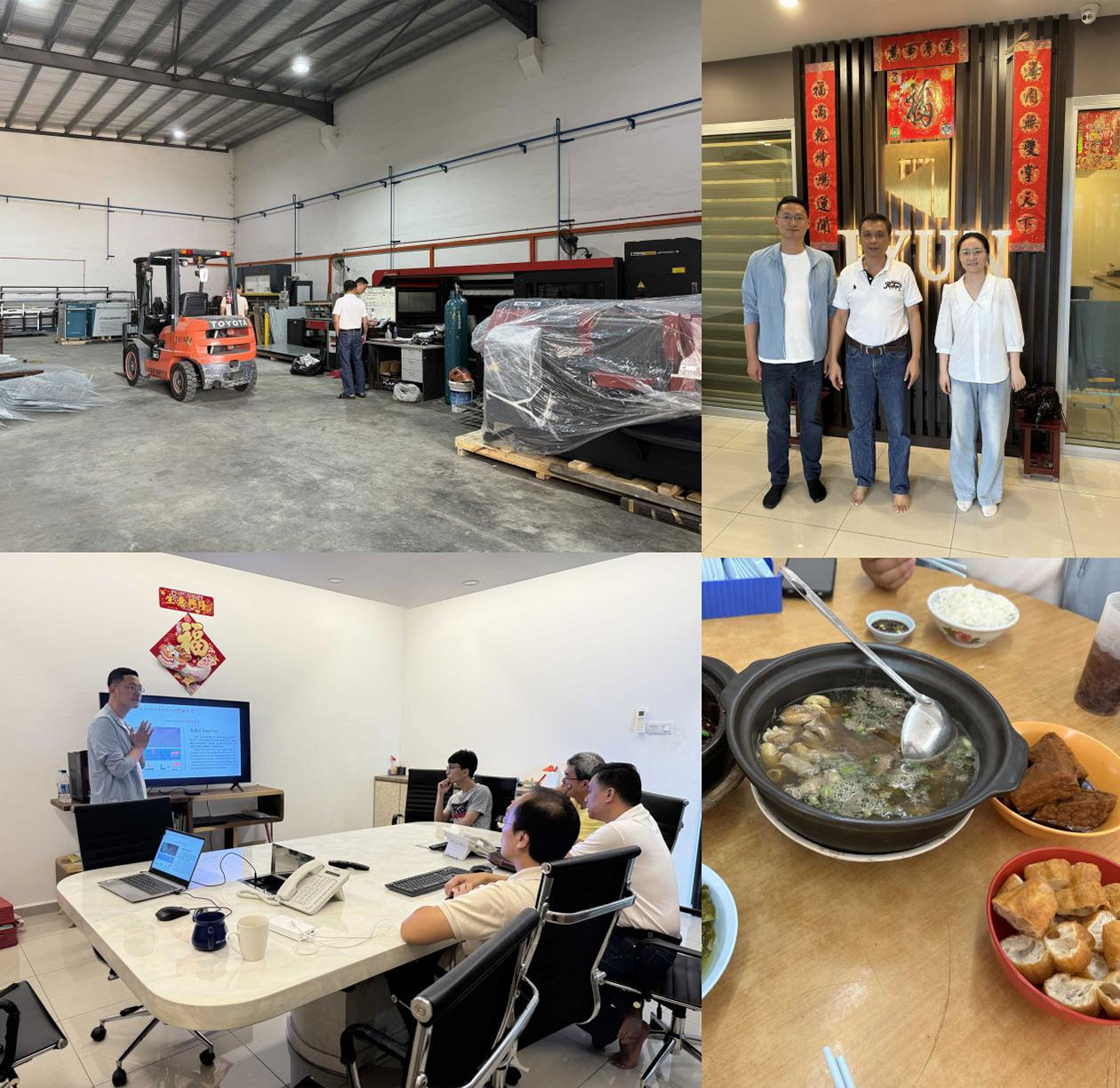 Müşteri tarafından sıcak bir şekilde karşılandı, JIANMENG ekibi bir yemek için müşterinin evine davet edildi ve otantik Bak Kut Teh ile tedavi edildi. Bu rahat ve dost canlısı atmosferde, iki taraf arasındaki bağ daha da güçlü hale geldi. Bundan sonra müşteri, ekibini üretim atölyesi turuna yönlendirerek ürün hattını ve üretim süreçlerini detaylı olarak tanıttı. Bu site ziyareti sayesinde, JIANMENG ekibi müşterinin iş modelini ve teknik ihtiyaçlarını daha net bir şekilde anladı ve gelecekte özel çözümler sunmak için sağlam bir temel oluşturdu.