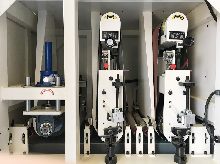 Makine iki geniş zımparlama kemeri birimi ile donatılmıştır. Taşlama ruloları tarafından sürdürülen, zımparlama kemerleri, aynı zamanda tel çekme işlemi yaparken, iş parçası yüzeyinden çamur parçacıklarını, oksit ölçeklerini, büyük burçları ve diğer kusurları çıkarmak için yüksek hızda döner. Ayrıca, yüksek hızda dönen ve iş parçası yüzeyine sürtünme ile temas eden ve üniform ve ince bir tel çekme etkisi üreten bir cilalama silindir ünitesine de sahiptir.